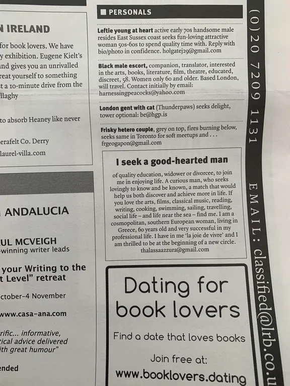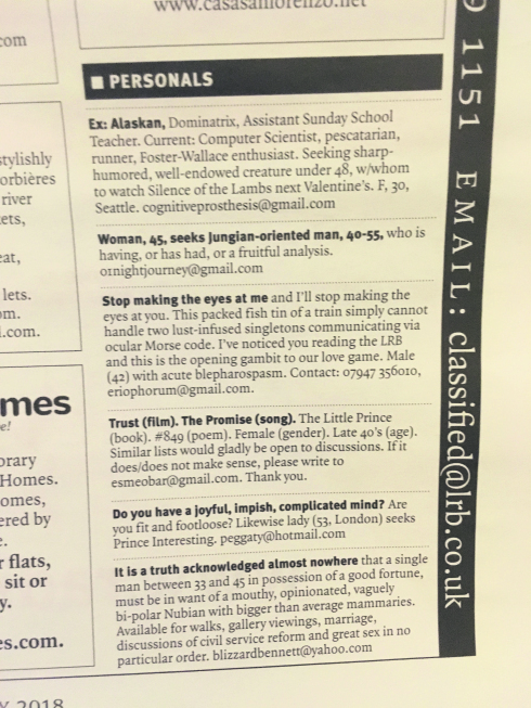I seriously considered putting an advert for Petrarchan in the LRB but I'm vaguely broke and it's a bit expensive.